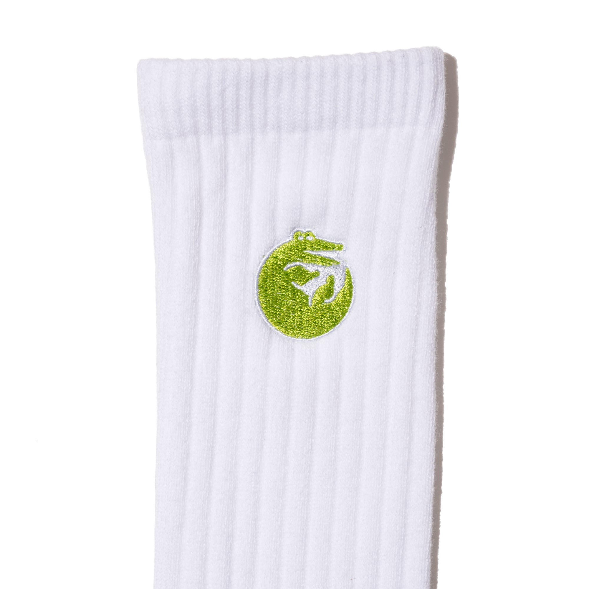 DAJARECORDの人気シリーズ「ANIMAL DAJARE」より、「ワニが輪になる」のソックスが登場しました。白の無地にワンポイントで施されたワニの刺繍が、シンプルながらもかわいらしいアクセントとなっています。遠目にはミニマル、近づくとクスッとくるギャップがポイント。